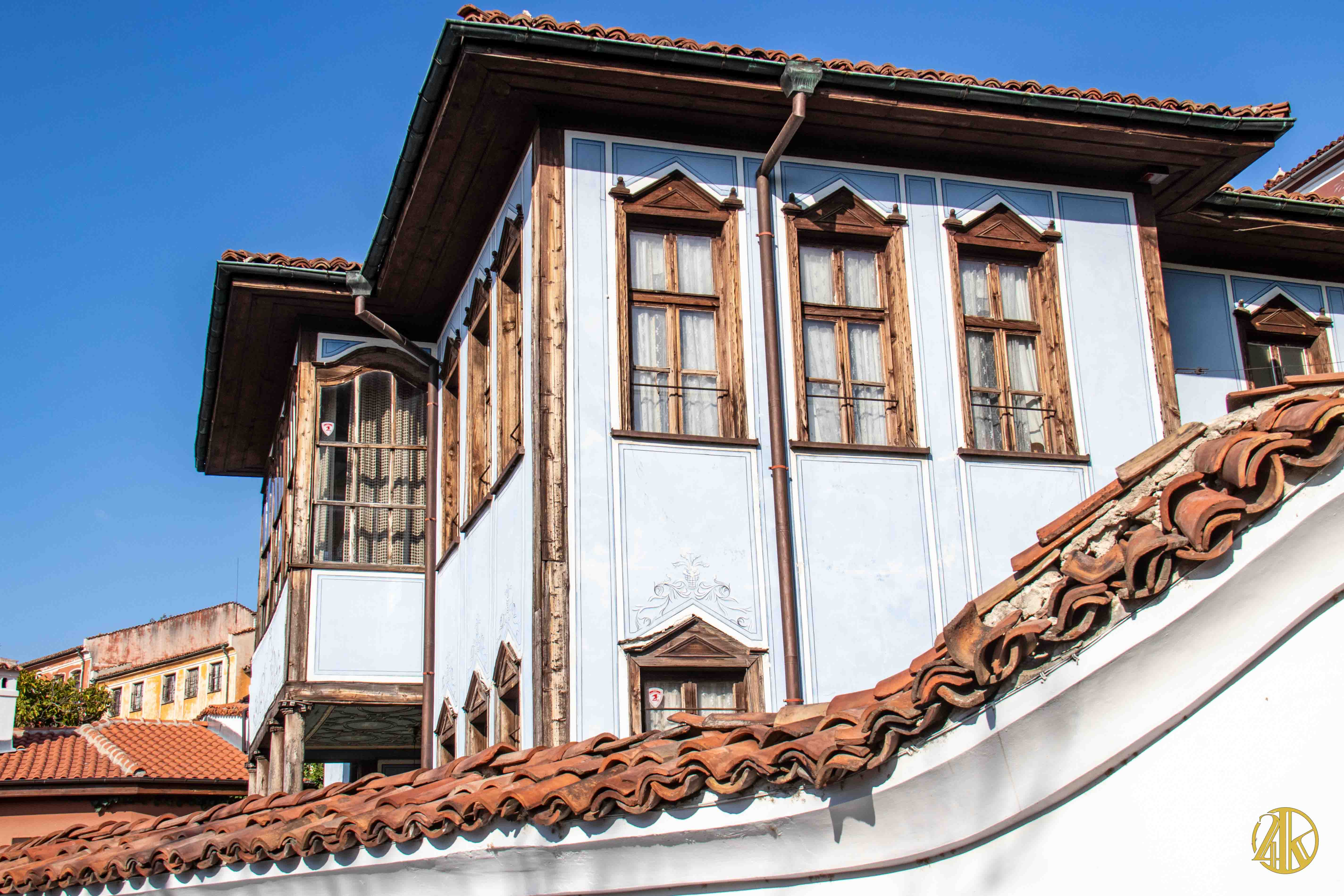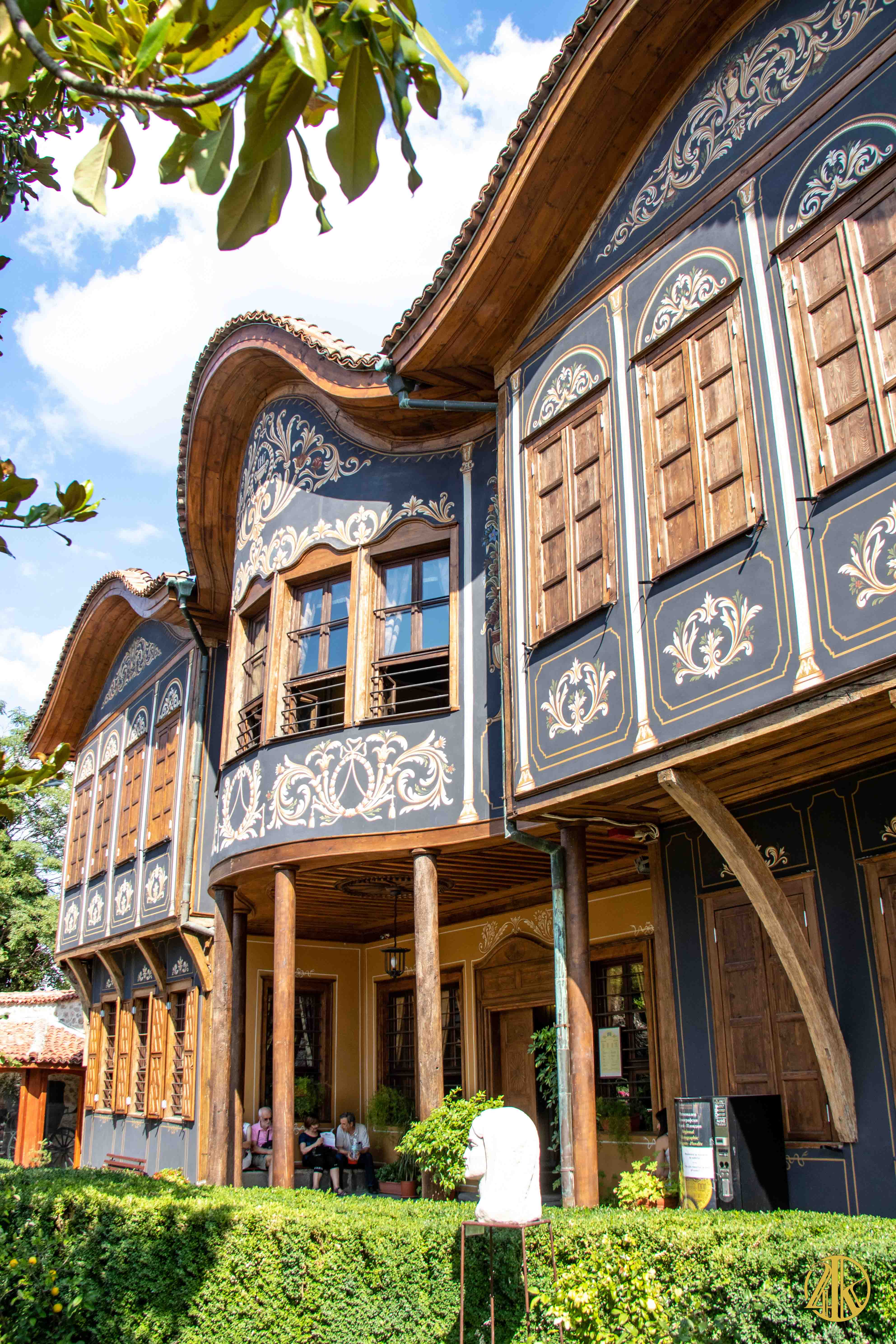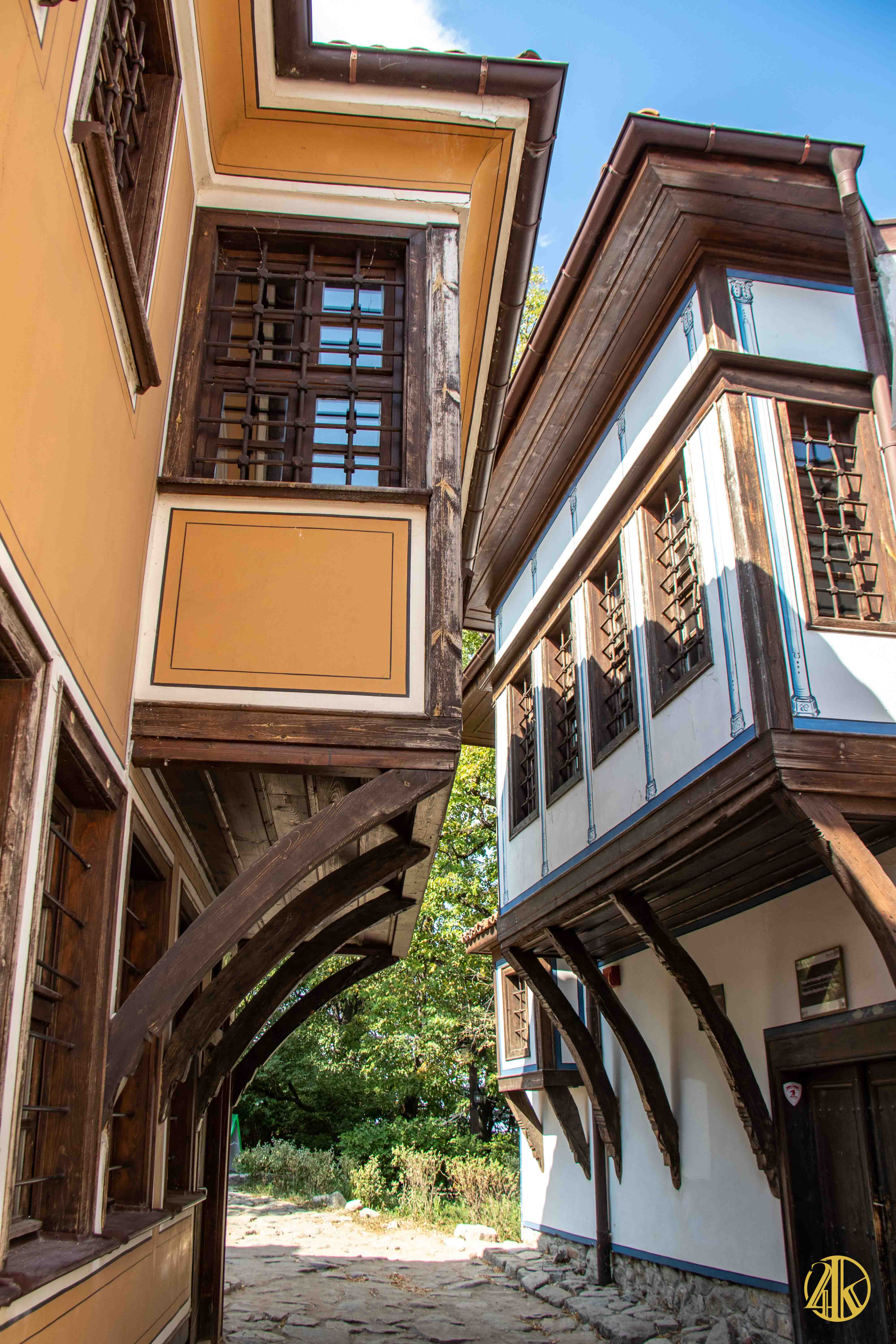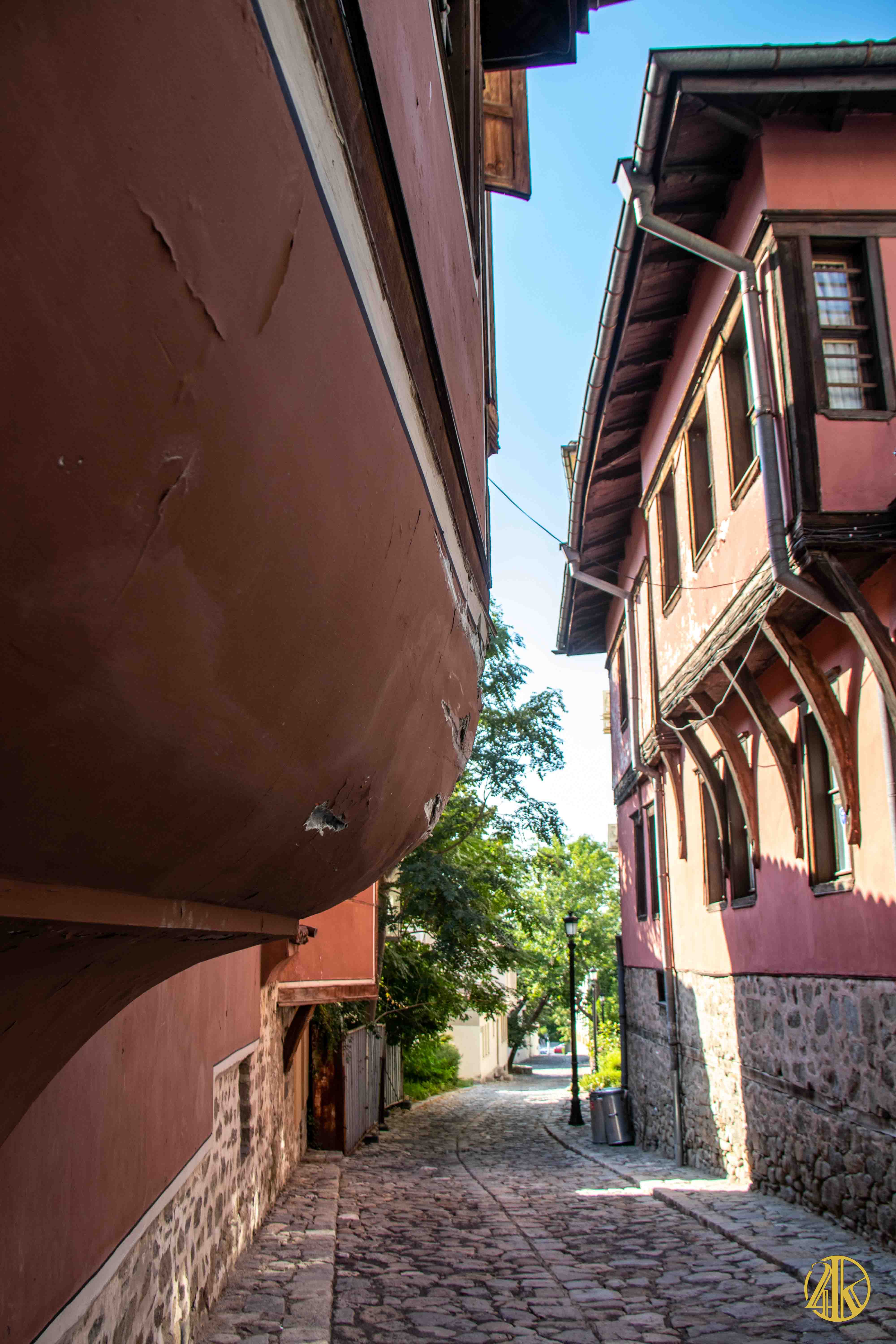 On s’enfonce tranquillement dans le vieux Plovdiv et on retrouve une concentration remarquable de bâtiments remontant au Renouveau bulgare (fin XVIIIème s.- début XIXème s.), période marquée par la volonté de s’émanciper de la domination ottomane et de développer le sentiment national bulgare. Les habitations présentent un style typiquement balkanique avec des stucs blancs, roses ou bleu vif, des charpente et boiseries sombres, des contreforts au courbes gracieuses et de fines colonnes, qui pour l’époque étaient assez avant-gardistes. C’est un vrai régal pour les yeux. Plusieurs maisons ont été transformées en musées et méritent la visite : Maison Kujumdzioglu, Maison Stepan Hindliyan, Maison Balabanova…