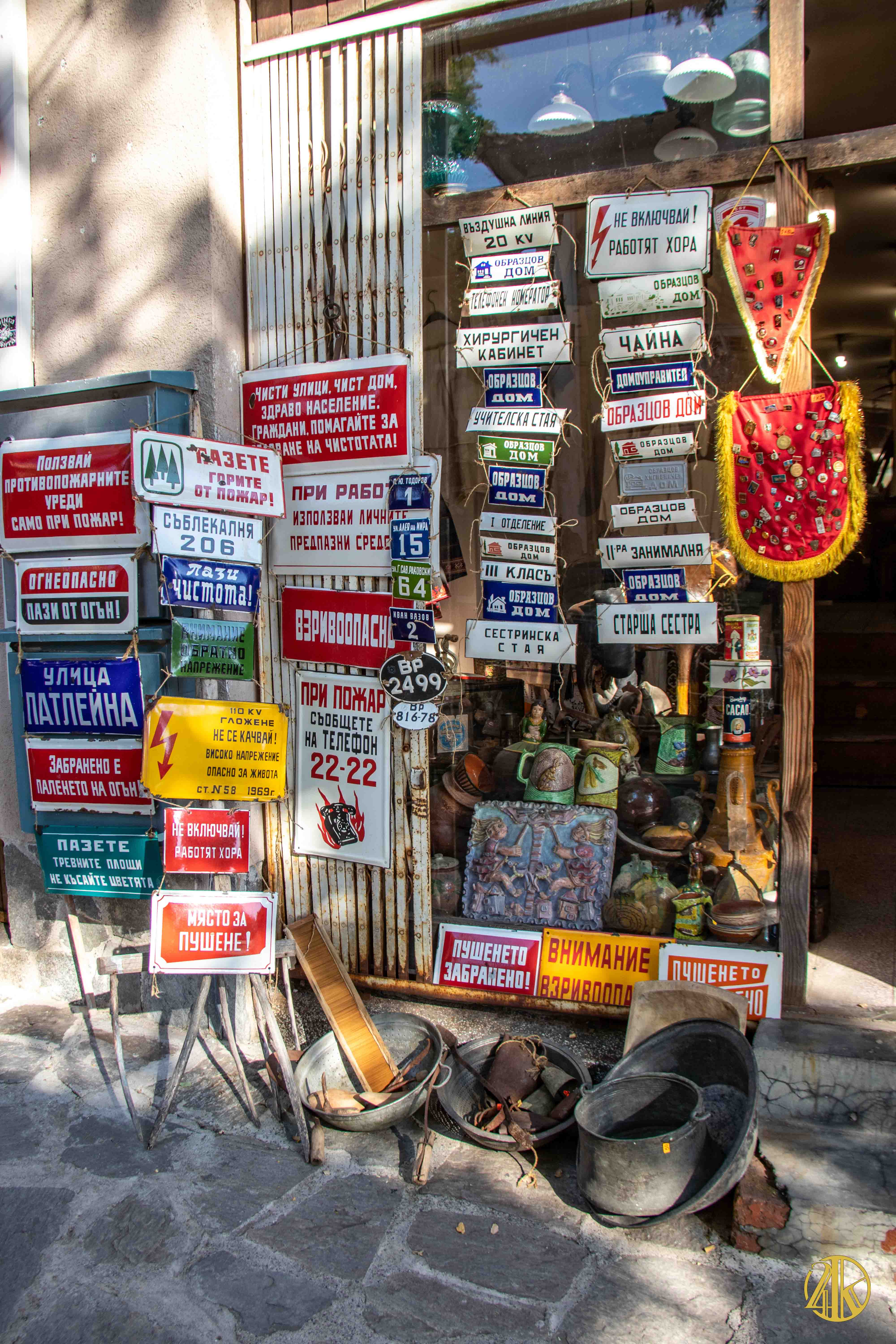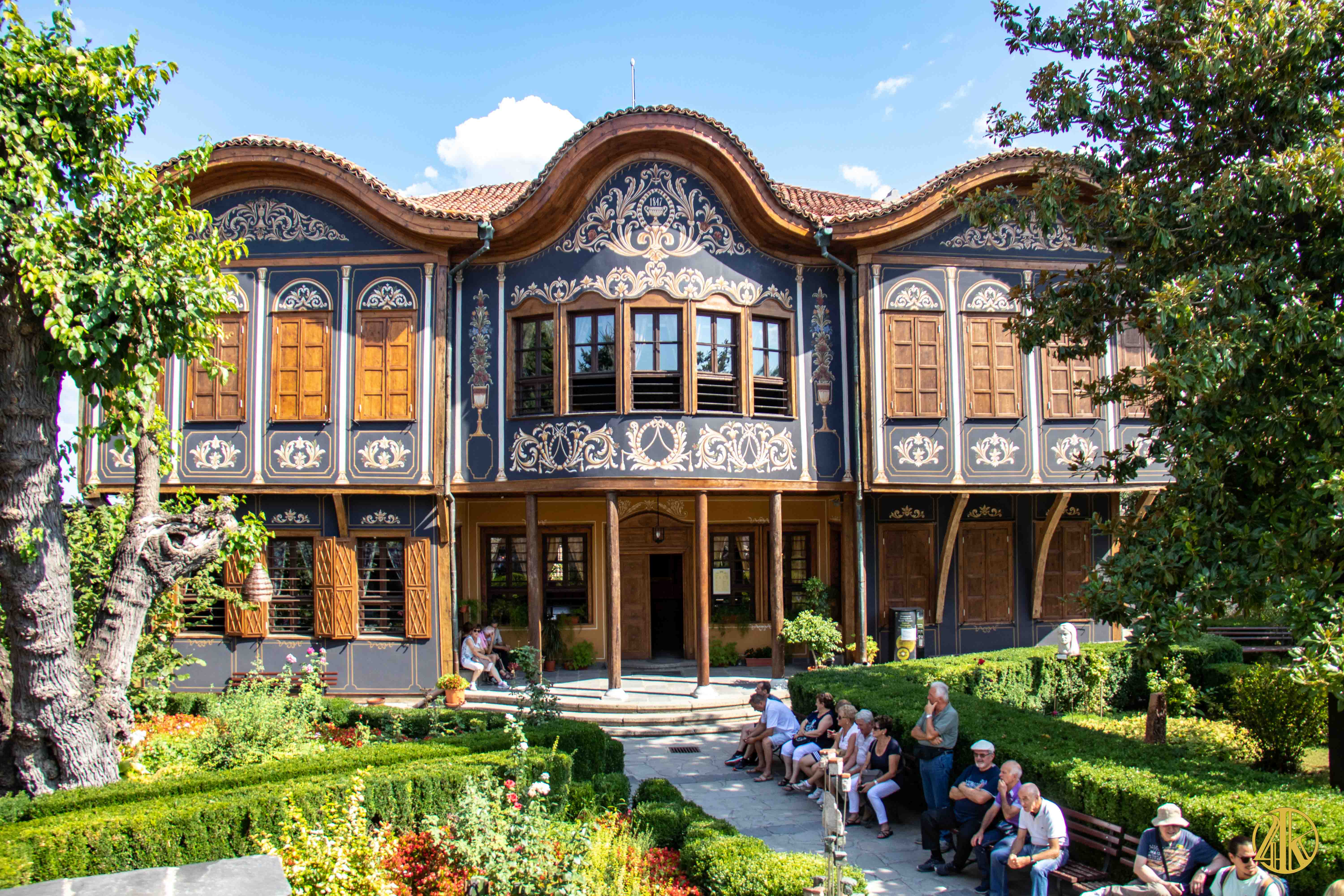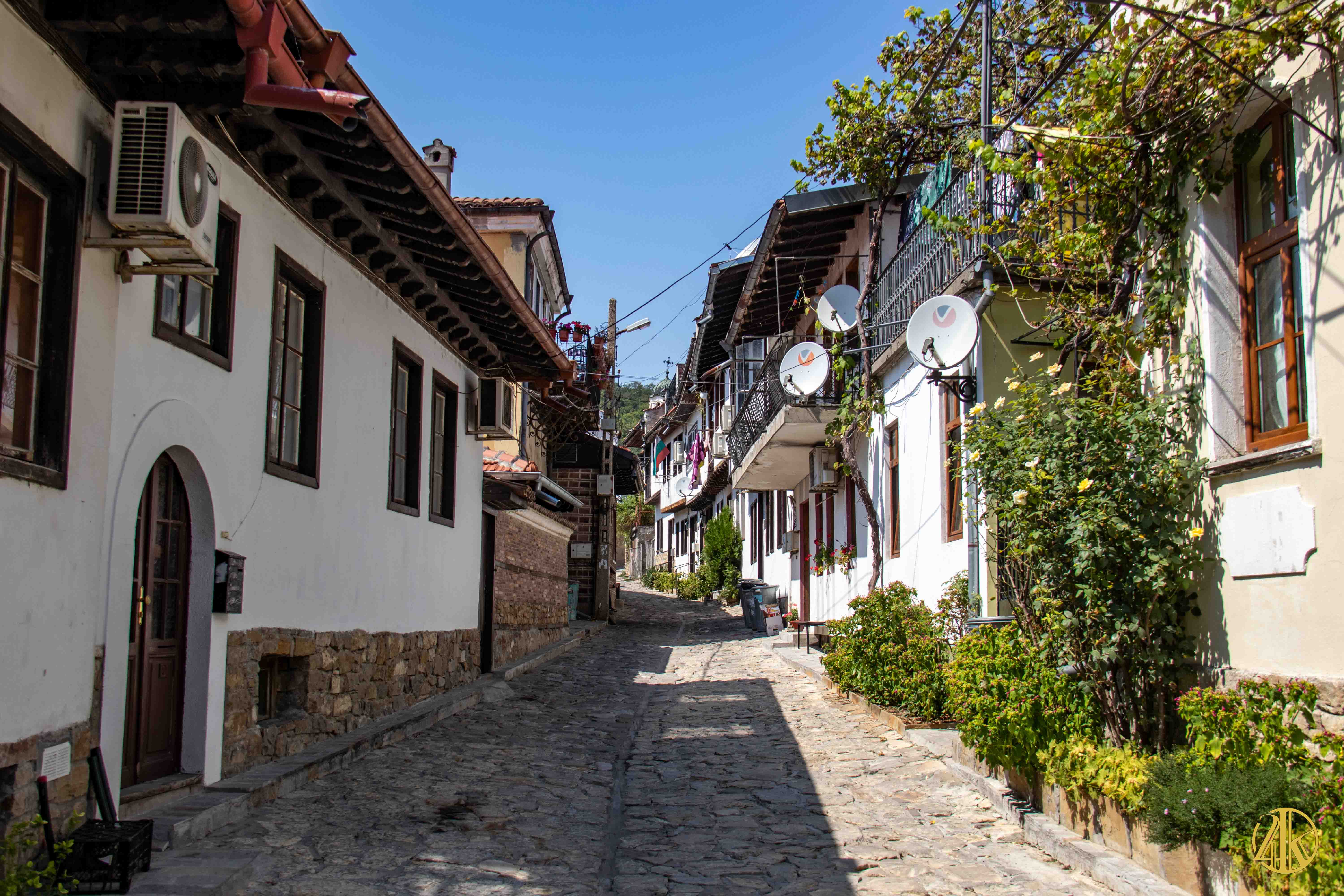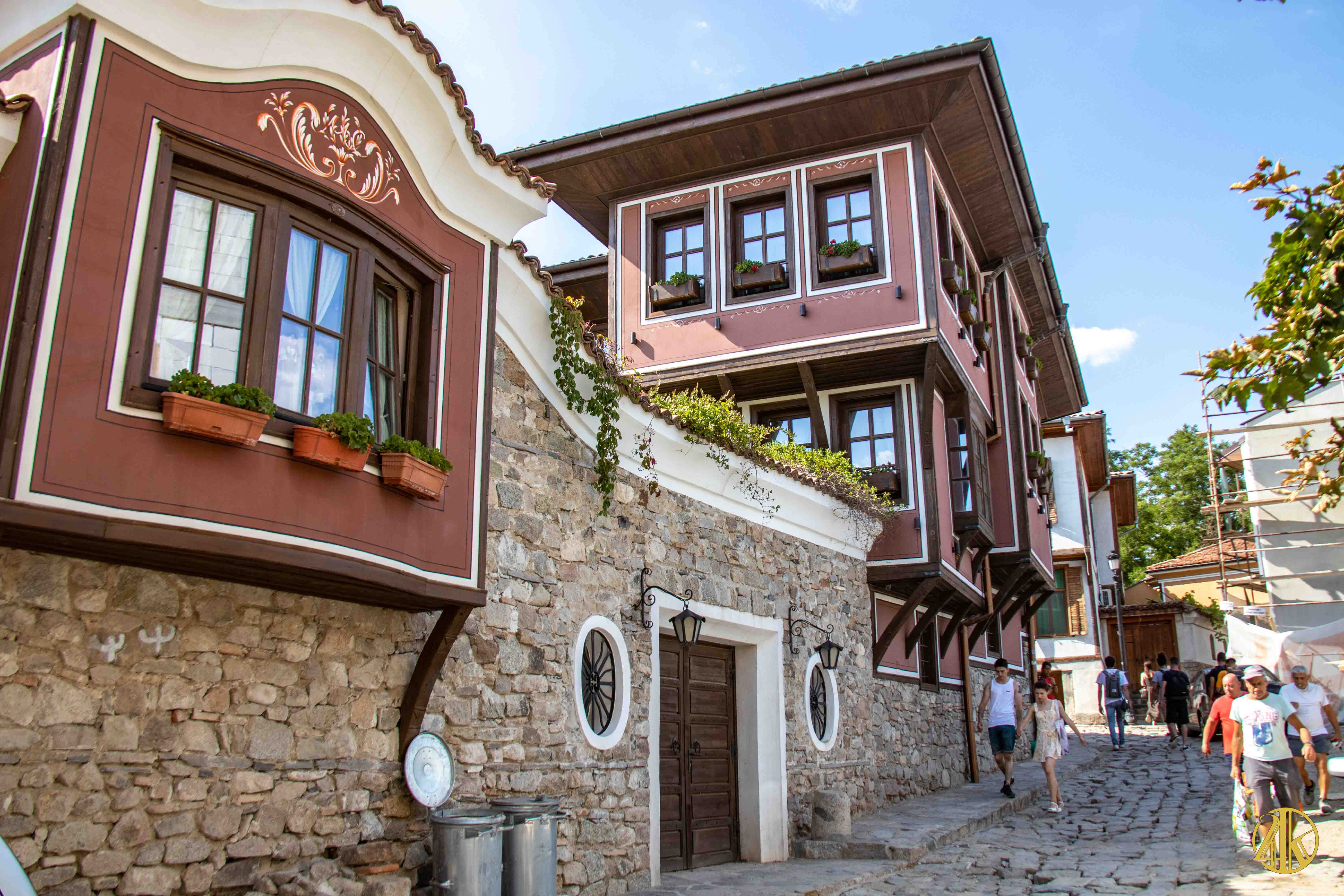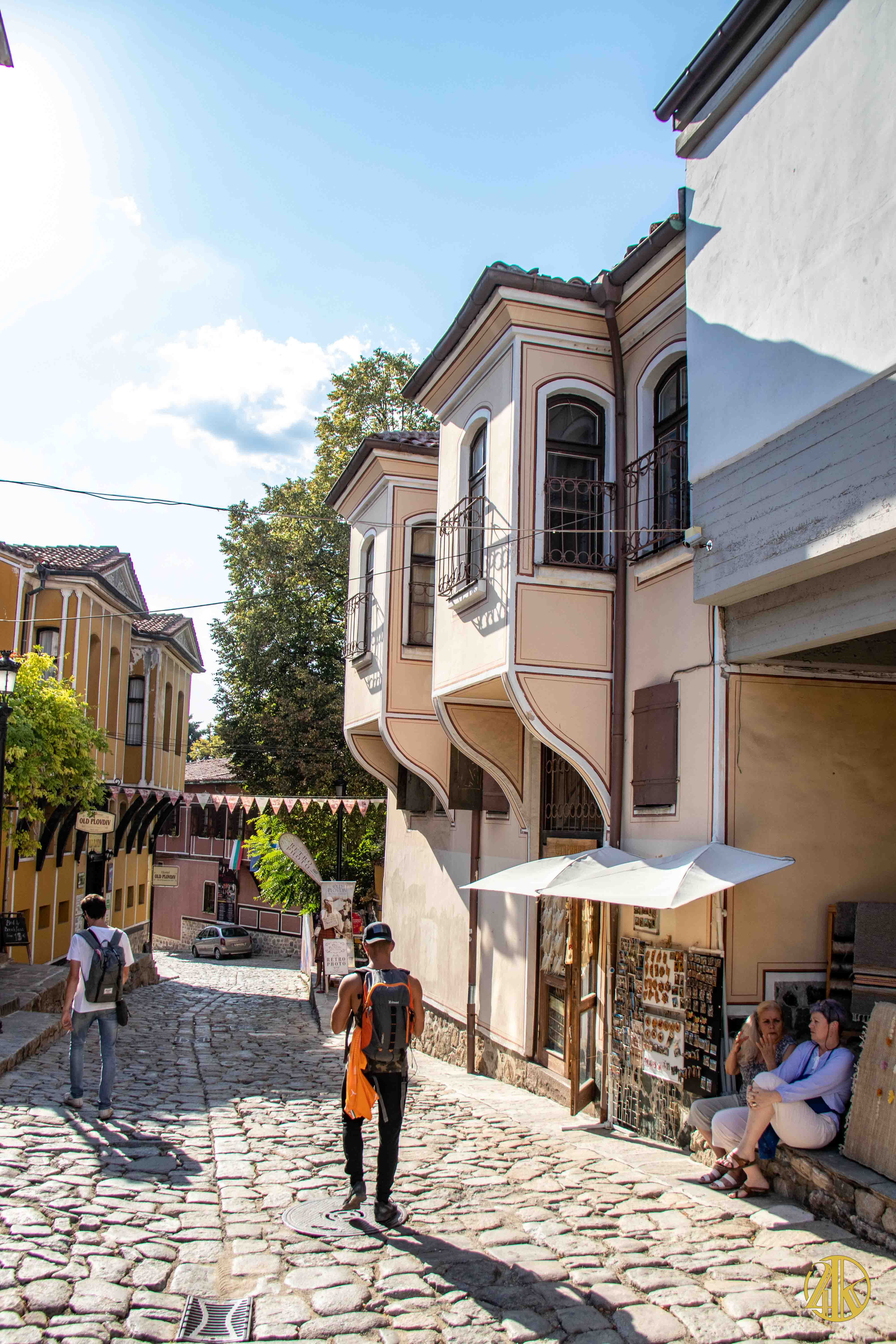 On s’enfonce tranquillement dans le vieux Plovdiv et on retrouve une concentration remarquable de bâtiments remontant au Renouveau bulgare (fin XVIIIème s.- début XIXème s.), période marquée par la volonté de s’émanciper de la domination ottomane et de développer le sentiment national bulgare. Les habitations présentent un style typiquement balkanique avec des stucs blancs, roses ou bleu vif, des charpente et boiseries sombres, des contreforts au courbes gracieuses et de fines colonnes, qui pour l’époque étaient assez avant-gardistes. C’est un vrai régal pour les yeux. Plusieurs maisons ont été transformées en musées et méritent la visite : Maison Kujumdzioglu, Maison Stepan Hindliyan, Maison Balabanova…