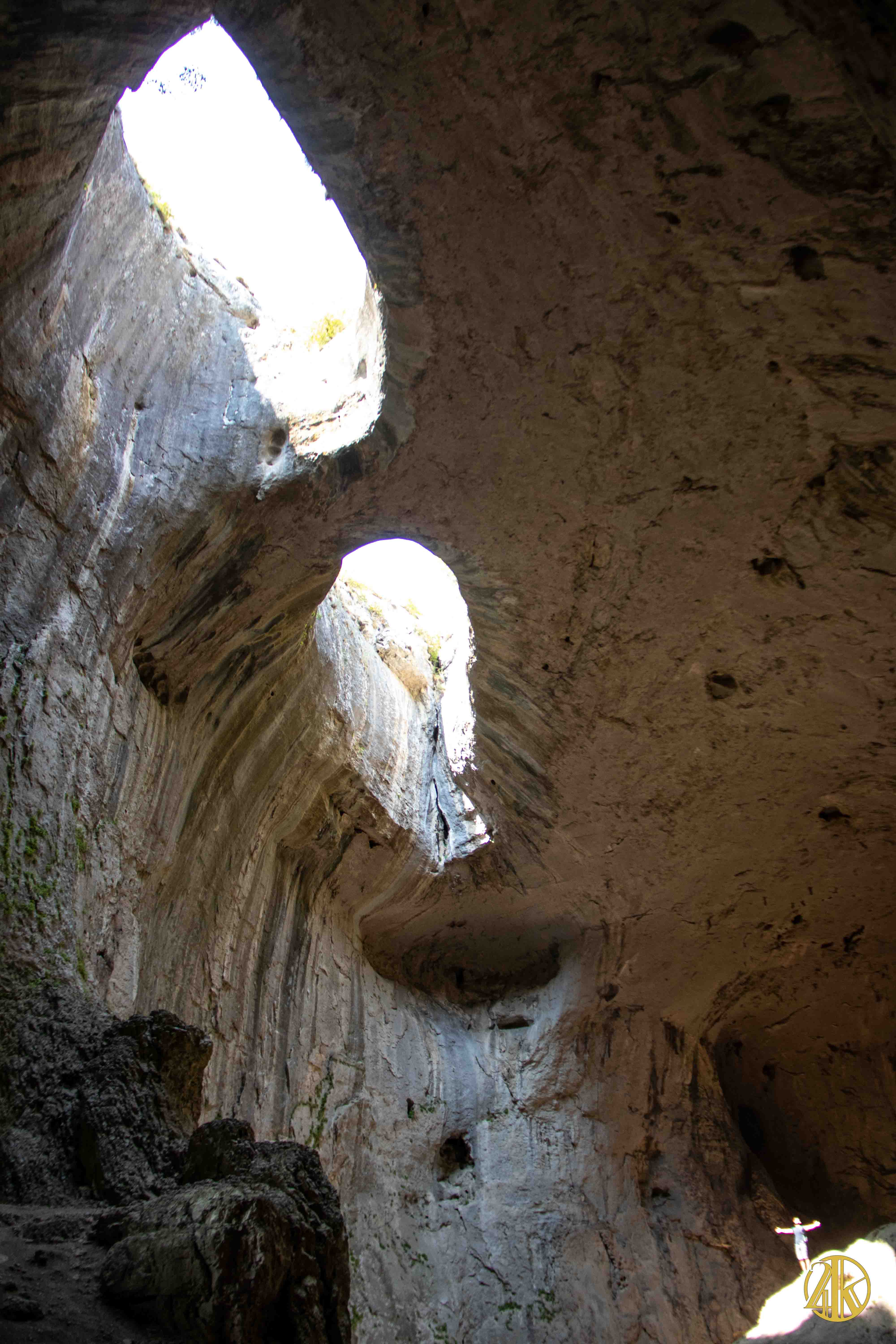 Comme la plupart des karsts, il s’agit d’un massif calcaire rongé par l’infiltration des eaux, donnant naissance à des cavités spectaculaires et des formes parfois étranges. Celle de Prohodna m’avait beaucoup marqué au court du visionnage d’un reportage télévisé. Elle présente des dimensions monumentales, véritable Cathédrale souterraine longue de 350 mètres et haute de plus de 55 mètres. Mais ce qui la caractérise véritablement, ce sont les deux cavités longitudinales en forme d’amande rappelant les yeux. Elle est d’ailleurs surnommée Grotte des Yeux de Dieu, ce qui lui confère un caractère mystique. Elle est inscrite depuis 1962 sur la liste des merveilles naturelles de Bulgarie. Encore une belle découverte au pays des Thraces !