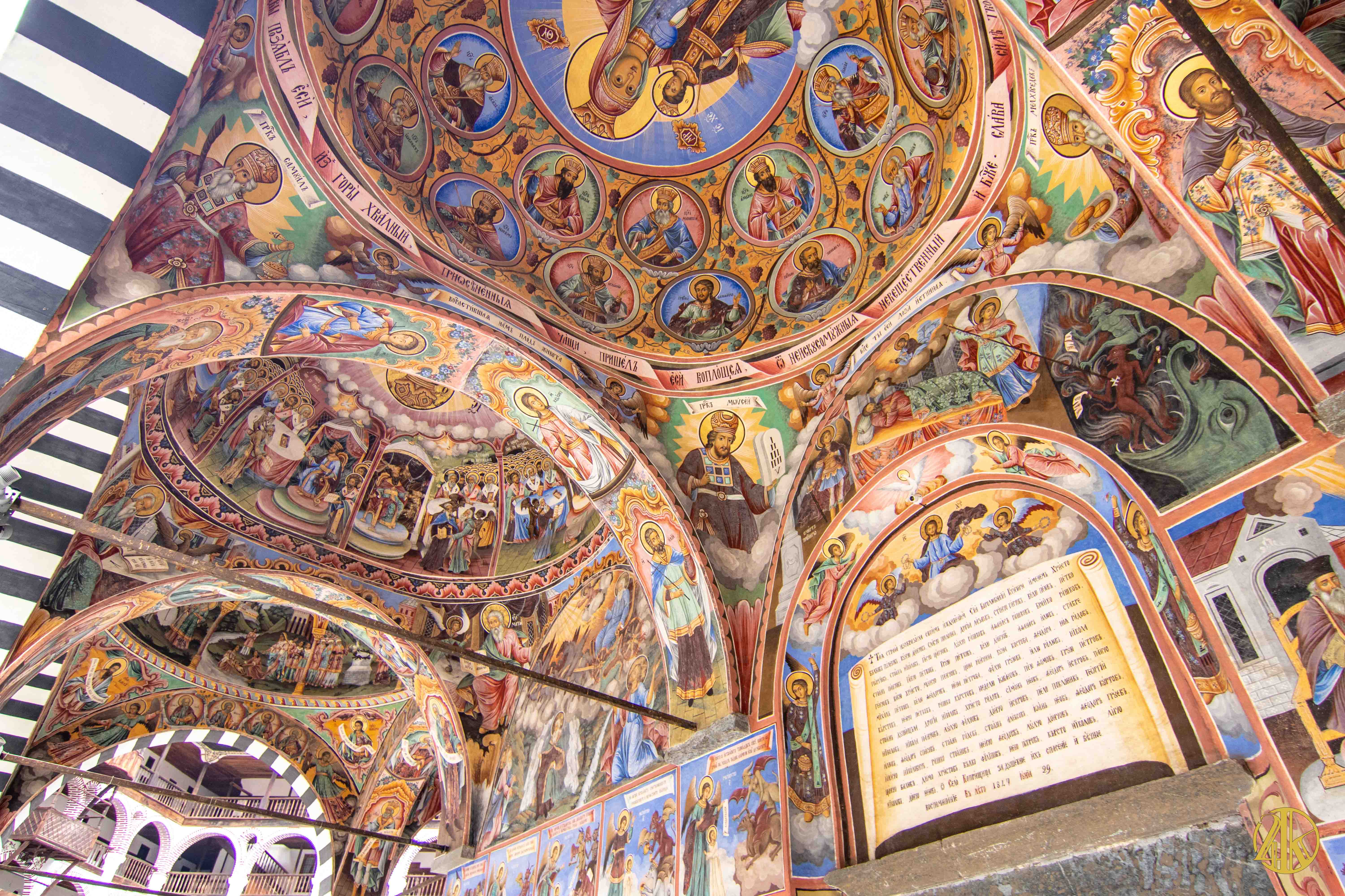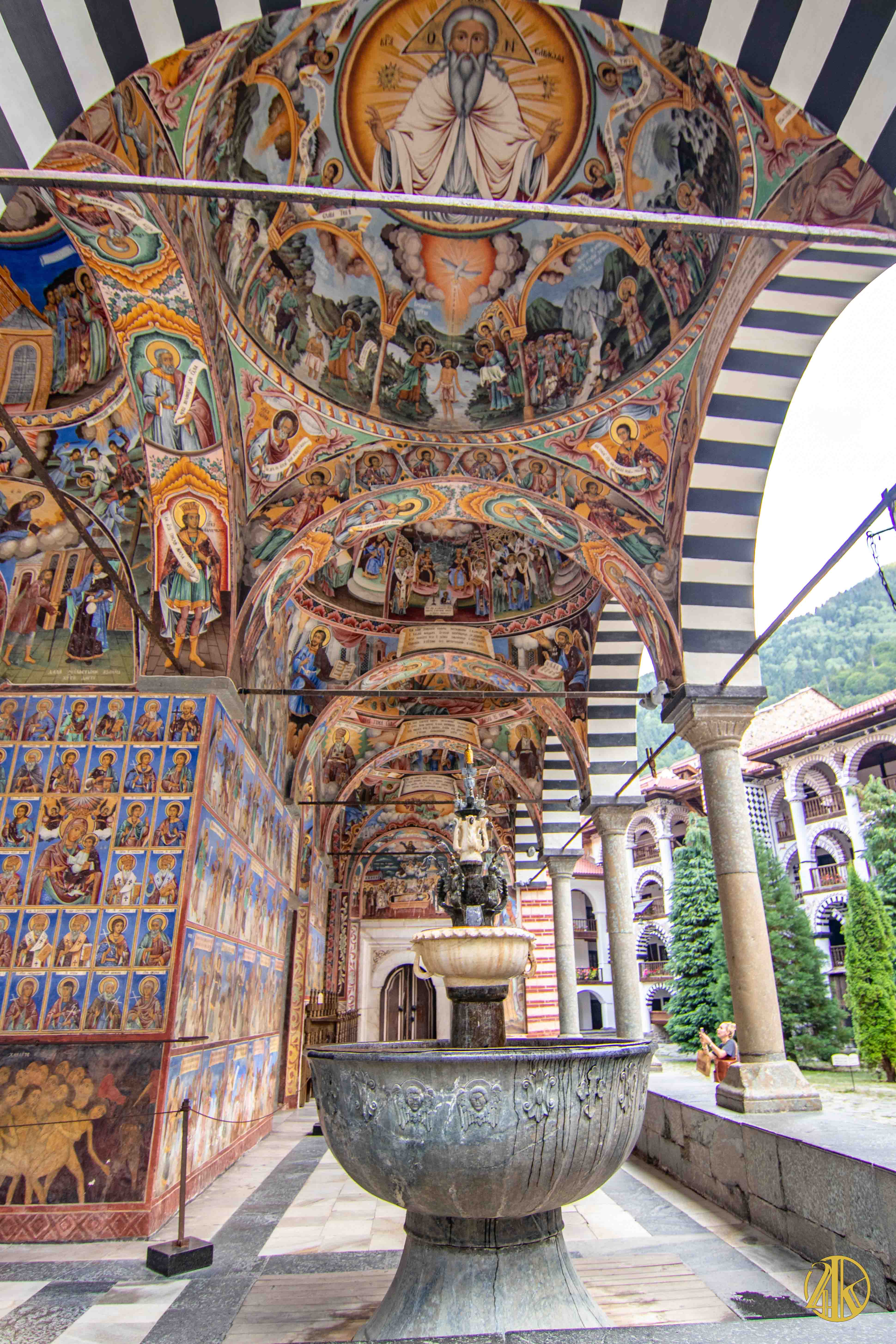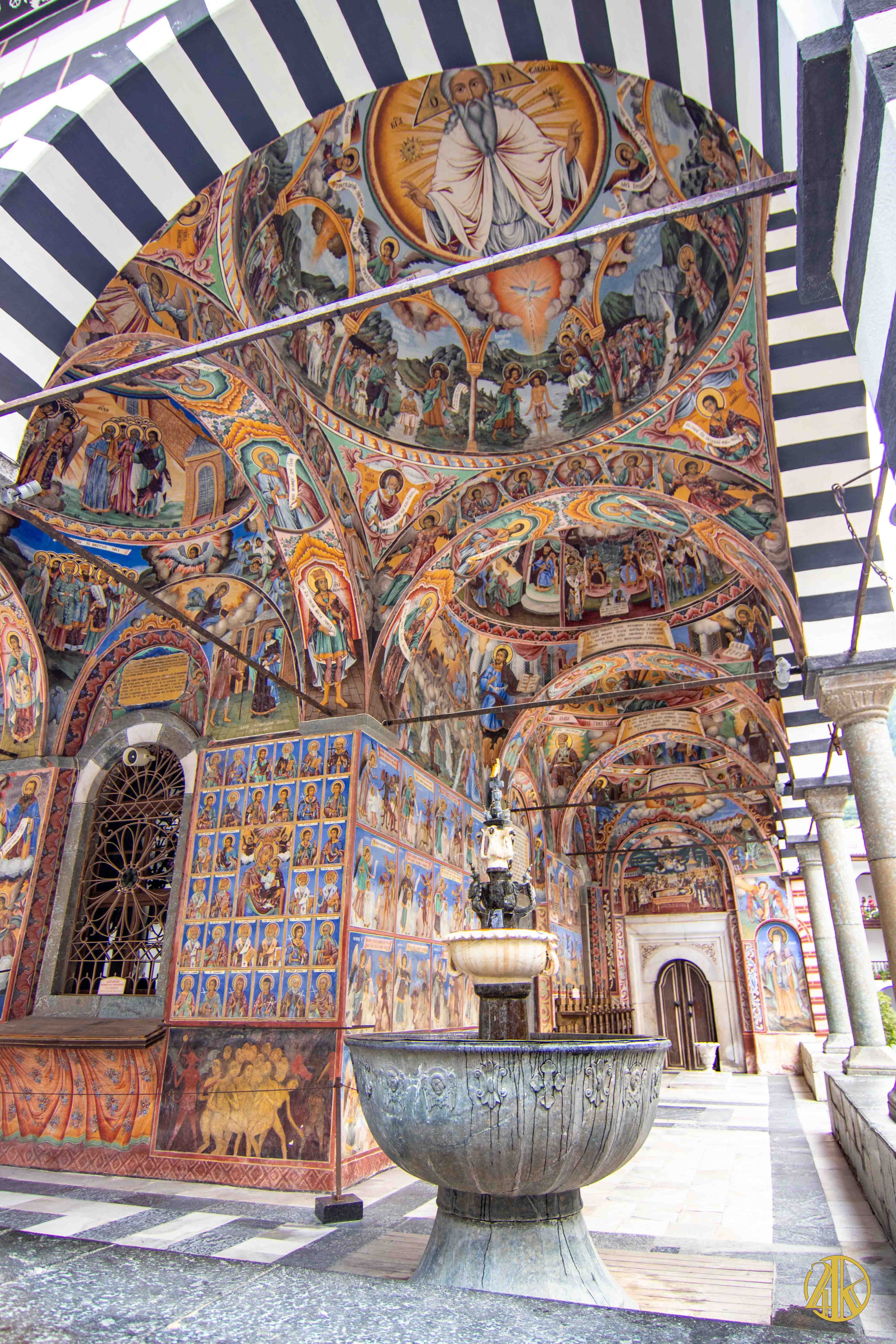 Fondé par l’ermite Saint Ivan de Rila en 930, le monastère plusieurs fois remanié, est caractéristique de la Renaissance Bulgare. Il est installé sur près de 9 000m2 et comprend une vaste cour, une église principale richement décorée, des bâtiments monastiques et une imposante tour médiévale. Je suis littéralement époustouflé par les fresques colorées et omniprésentes du célèbre et productif peintre Zahari Zograf réalisées au cours du XIXème siècle.
