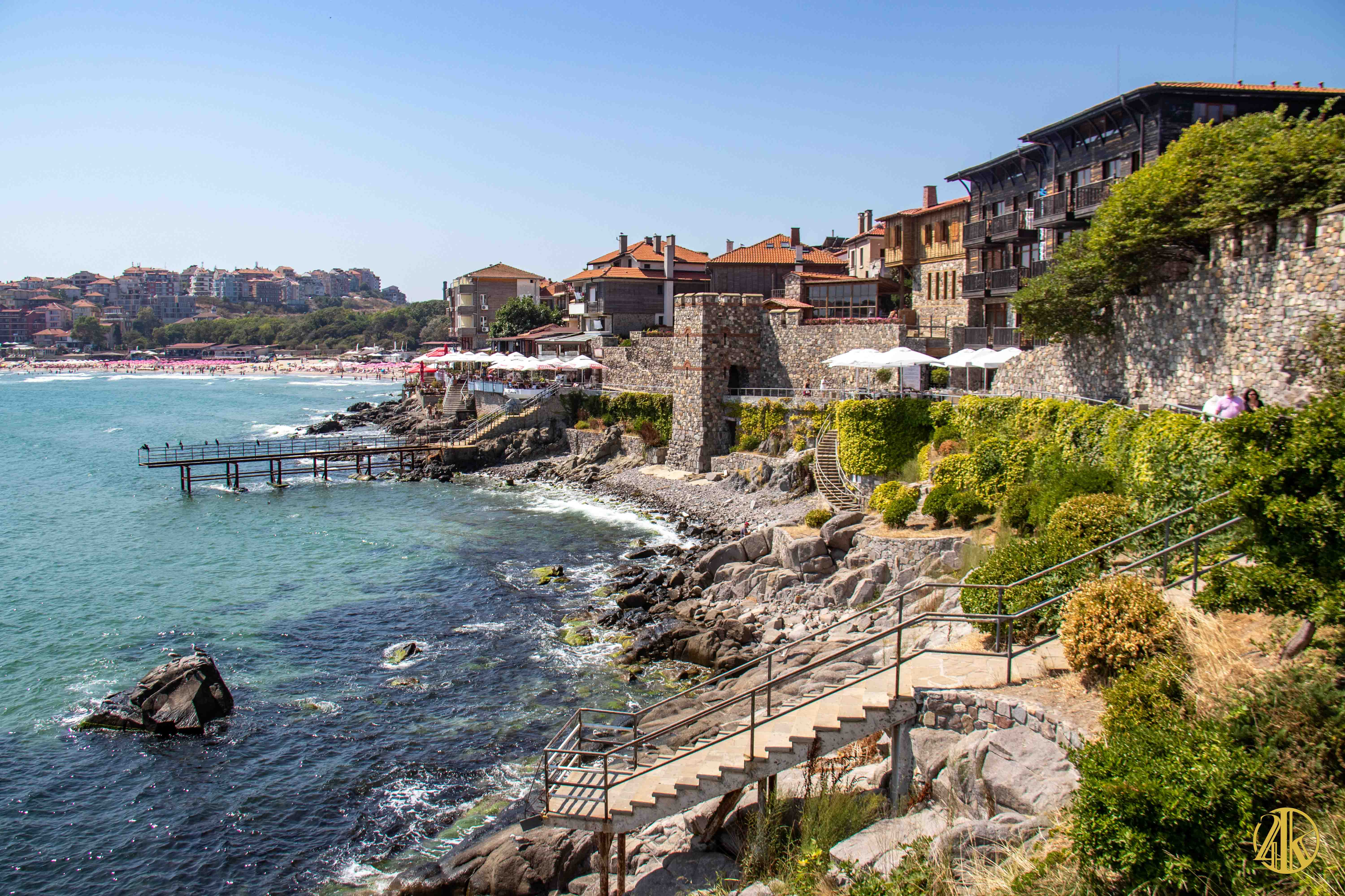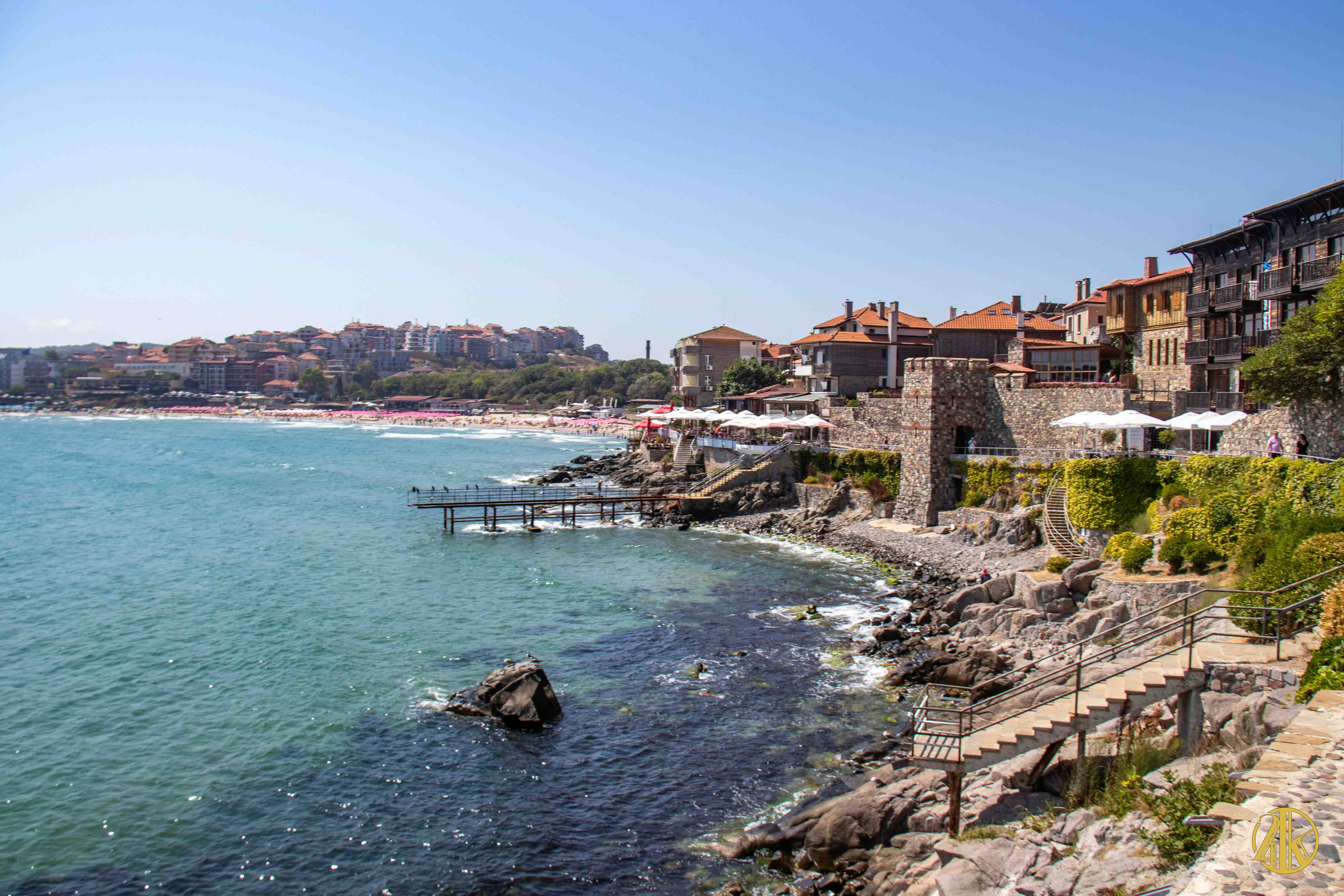 Après toutes ces pérégrinations sous un soleil de plomb, nous sommes contents de trouver un peu de fraîcheur sur la côte de la Mer Noire du Sud de la Bulgarie. On pose nos valises à Sozopol, ancienne colonie grecque qui présente un charme fou. L’antique Apollonia dispose d’un cadre idéal avec une belle baie protégée des vents par une petite presqu’île, sur laquelle se déploie le centre ancien flanqué d’innombrables maisons typiques en bois sombre.