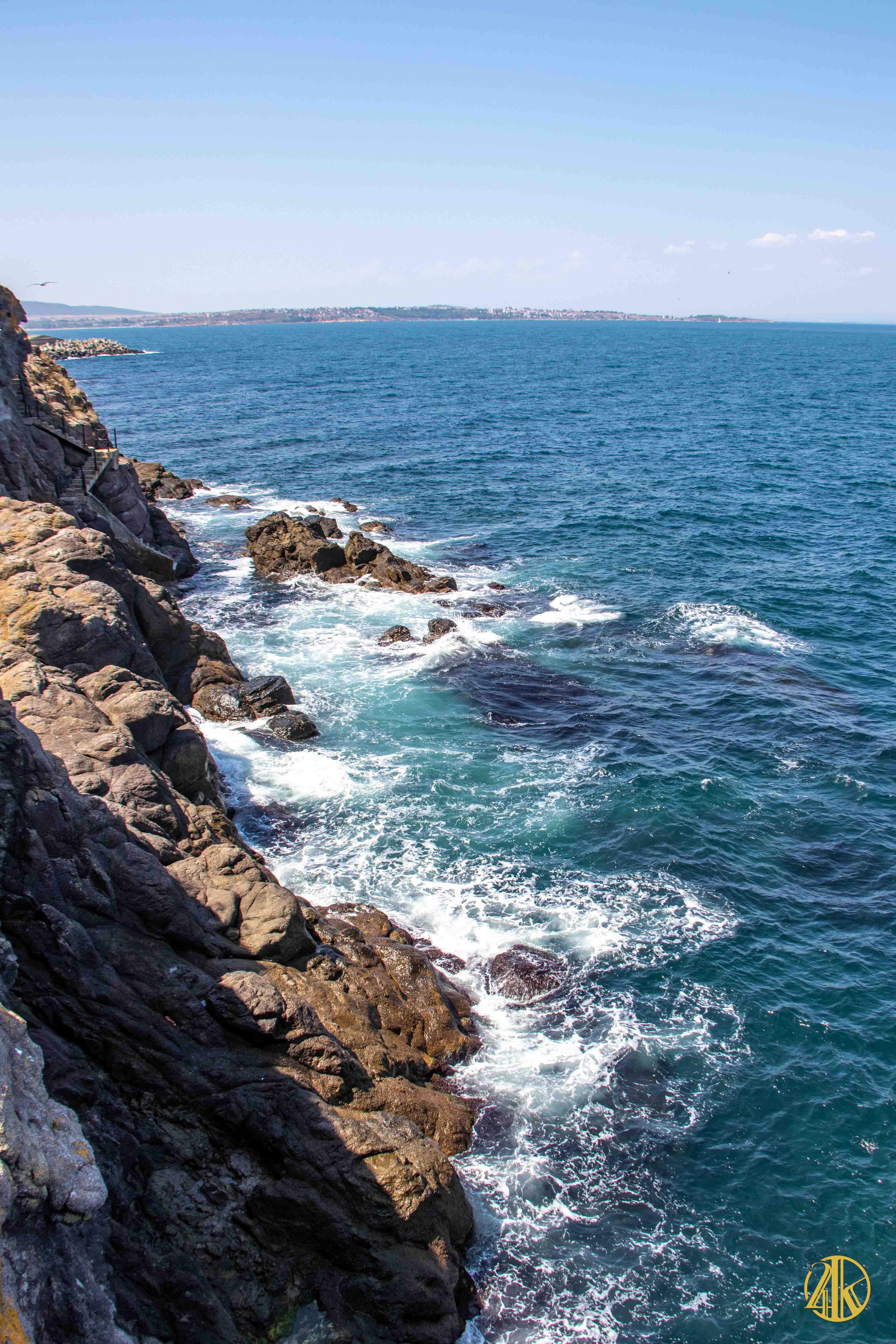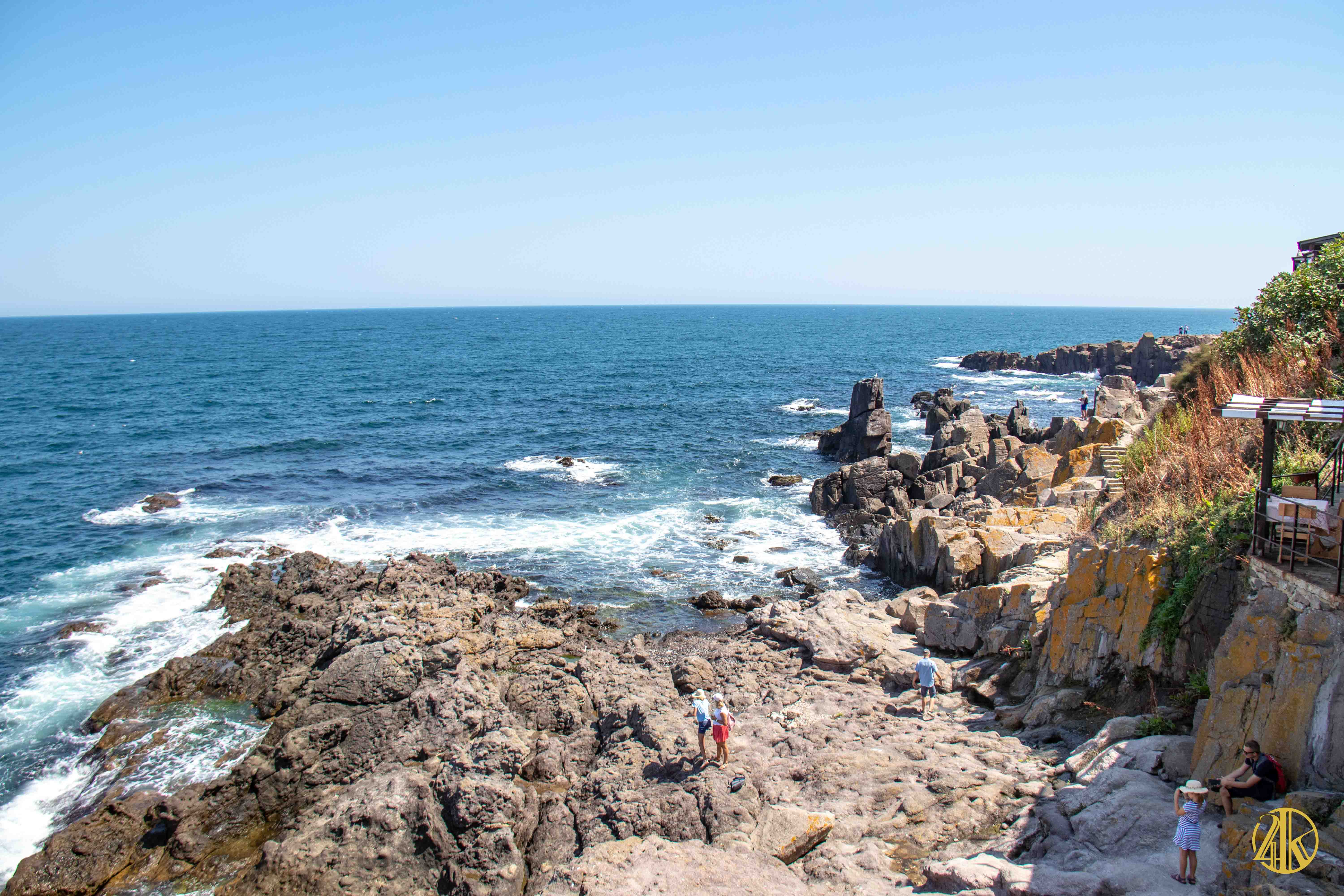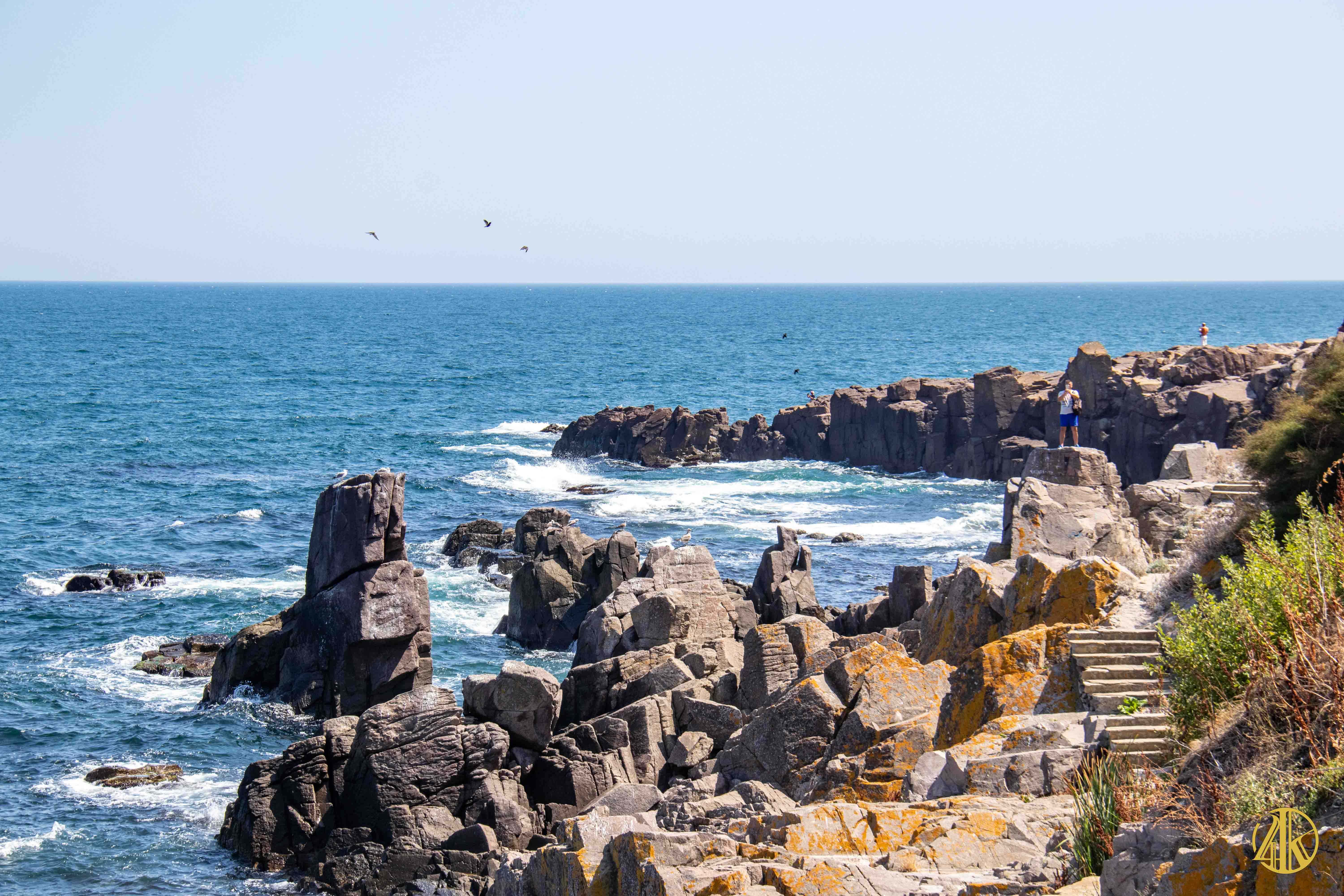 Suite à un déjeuner bien mérité, on ne pense qu’à piquer une tête mais la plage de sable fin est bondée. Une petite marche digestive effectuée le long des fortifications de la ville en front de mer, nous permet de tomber sur une sympathique crique rocheuse idéale pour la baignade à proximité du Cap Skamni. « Que ça fait du bien ! ». On viendra le lendemain matin tourner quelques nouvelles image du crew en pleine action face à la Mer Noire.